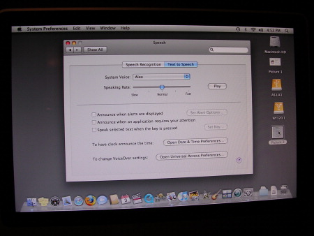 It would be nearly impossible to conduct a review of the VoiceOver screen reader without including some information and comments on the Macintosh operating system. For individuals who have never used a Mac, this information will help you to gain a clearer understanding of what it is like to use this combination. Being a longtime Windows user myself, I can safely say that learning the Mac with VoiceOver required a bit of practice. However, after a short time, I found the combination simple to use and was navigating the Mac with ease.